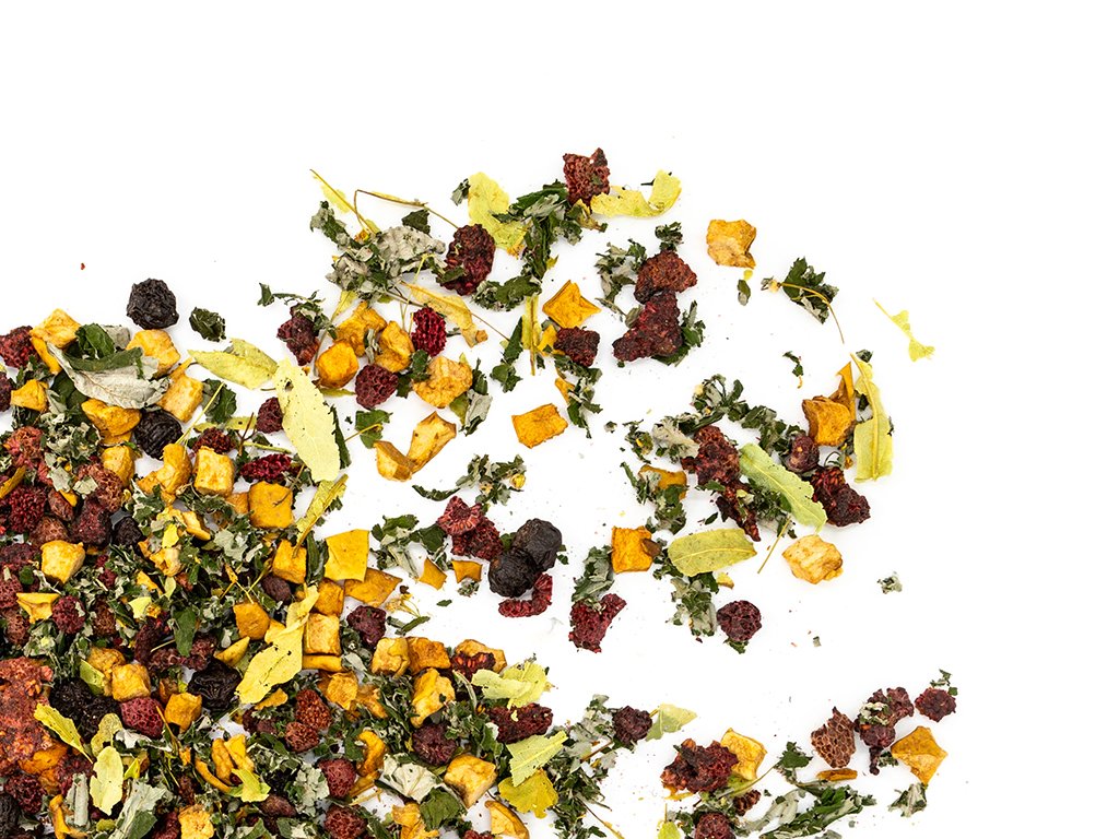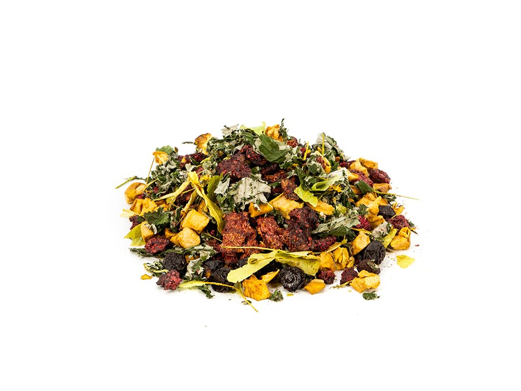 Tento výborný domáci ovocno-bylinný čajík je ručne miešaný a balený s dôrazom na prirodzenú chuť a vôňu ovocia a bylín. Skvelo sa hodí na horúce letné dni aj na dlhé jesenné či zimné večery. V studenej verzii príjemne osvieži, v horúcej zas zahreje a pripomenie spomienky na leto.